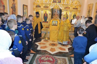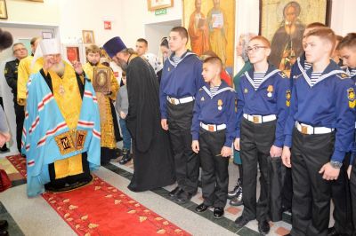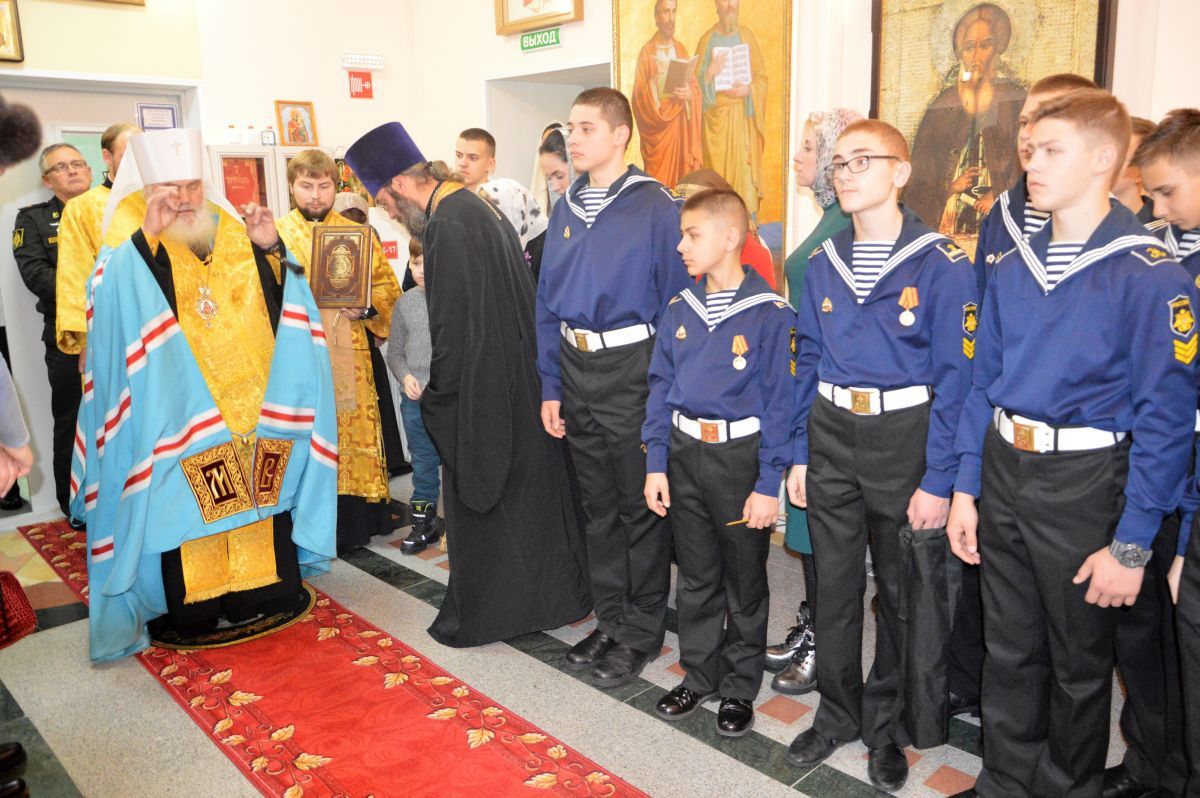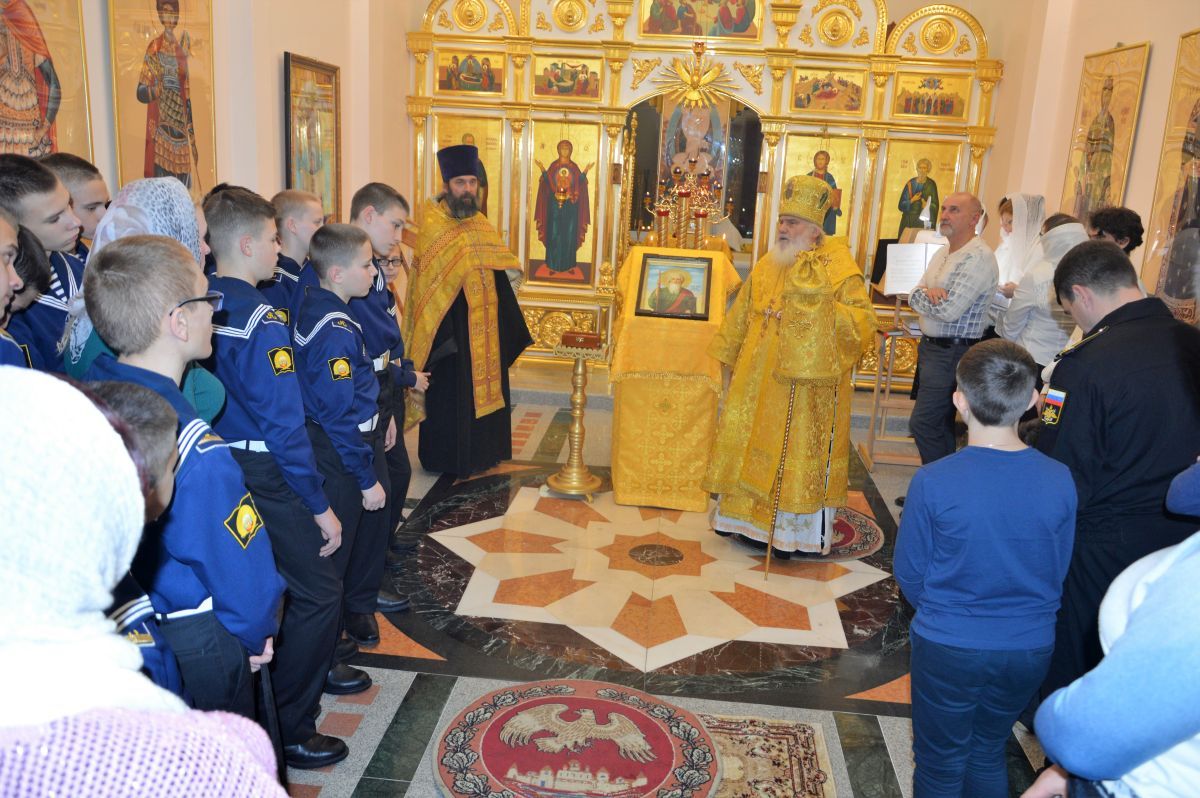 Храм в честь этого святого, Небесного покровителя военнослужащих и моряков, действует на территории ТОВВМУ-Нахимовского Президентского кадетского училища. Владыке сослужил настоятель храма иерей Николай Манукян. На богослужении присутствовали кадеты и сотрудники училища.