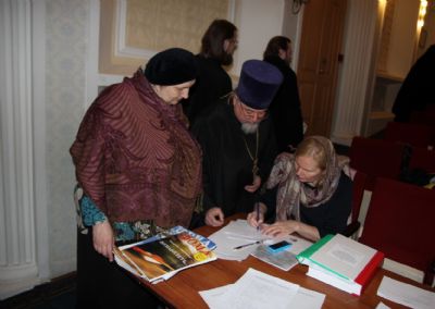 Отец Александр рассказал о работе добровольцев. Он привёл данные о тех, кто постоянно занимается социальным служением: при Покровском соборе работает 71 доброволец, Успенском храме сестричество – 17 чел., Казанский храм – 3, храм св. Игоря Черниговского – 6 чел, Храм св. Андрея Первозванного – 6 чел., храм св. Спиридона Тримифунтского – 2 чел. В Уссурийске – при храме Покрова 10 чел., при Никольском храме сестричество – 13 человек. В Покровке – 15 чел., в Хороле – 4, в Артёме – 8, в Спасске-Дальнем 5 чел.