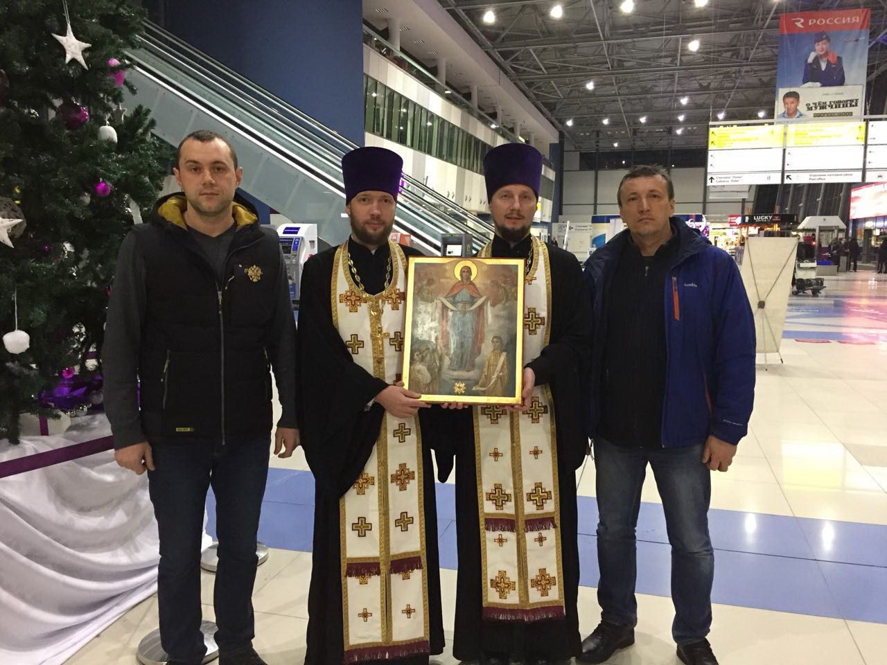 Во Владивосток Покровский образ прибыл из кругосветного путешествия — из Гонконга (Китай), в сопровождении организатора этой духовной акции руководителя Международного фонда «Под Покровом Богородицы» Евгения Егоровича Королёва: