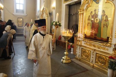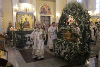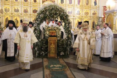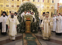 Его высокопреосвященству сослужили благочинные I, II, III, IV округов и духовенство епархии.