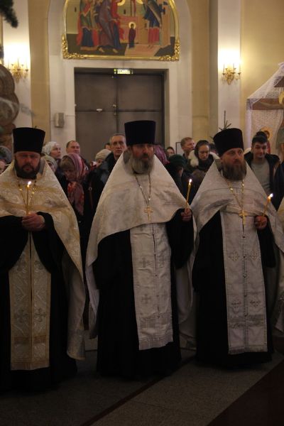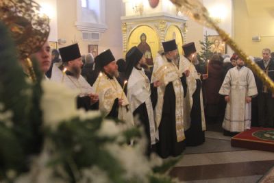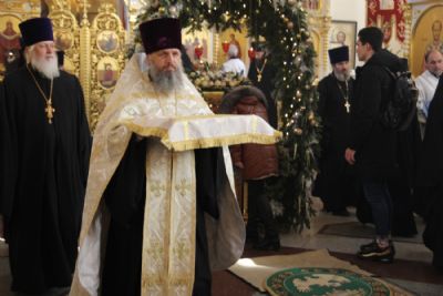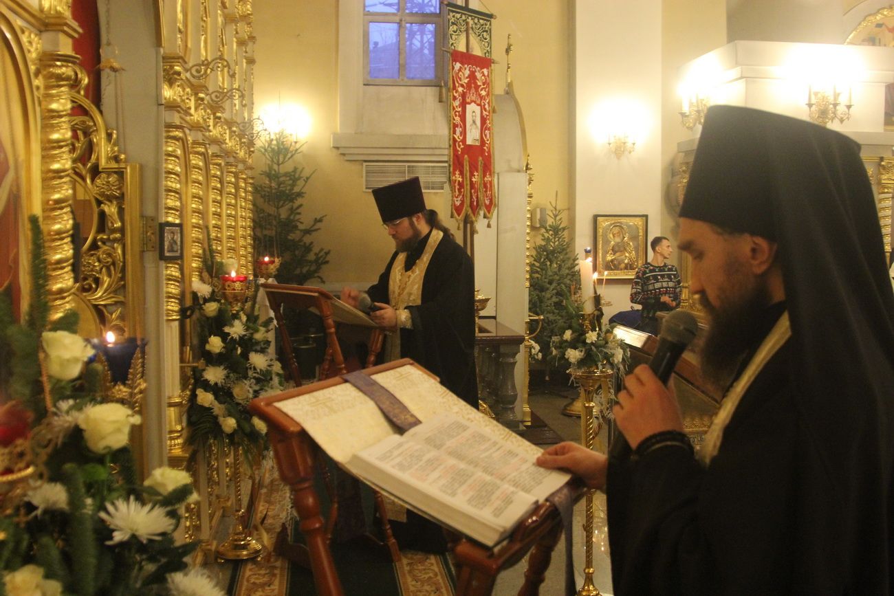 Вечером того же дня митрополит Владивостокский и Приморский Вениамин и викарий Владивстокской епархии епископ Уссурийский Иннокентий возглавили служение Великой Рождественской вечерни в Покровском кафедральном соборе. Архиереям сослужили клирики Владивостокской епархии