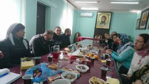 Так же раз в месяц все добровольцы собираются на акафист святителю Иоанну Шанхайскому и Сан-Францисскому в Покровском кафедральном соборе. 11 февраля 2018 года добровольцы не только молились, но и намечали планы службы «Милосердие» на 2018 год, а так же обсудили организацию патронажного служения в приходских общинах милосердия.