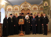 В завершении встречи Александр Иванович Суровцев подарил митрополиту Вениамину образ святого праведного воина-флотоводца Феодора Ушакова, которую освятил Святейший Патриарх Московский и всея Руси Кирилл на освящении Морского собора в Кронштадте и маленькие иконы св. Феодора Ушакова всем участникам совещания.