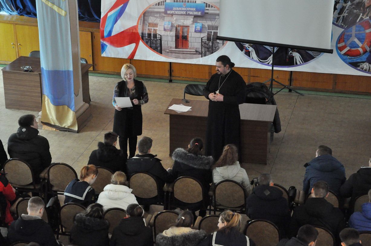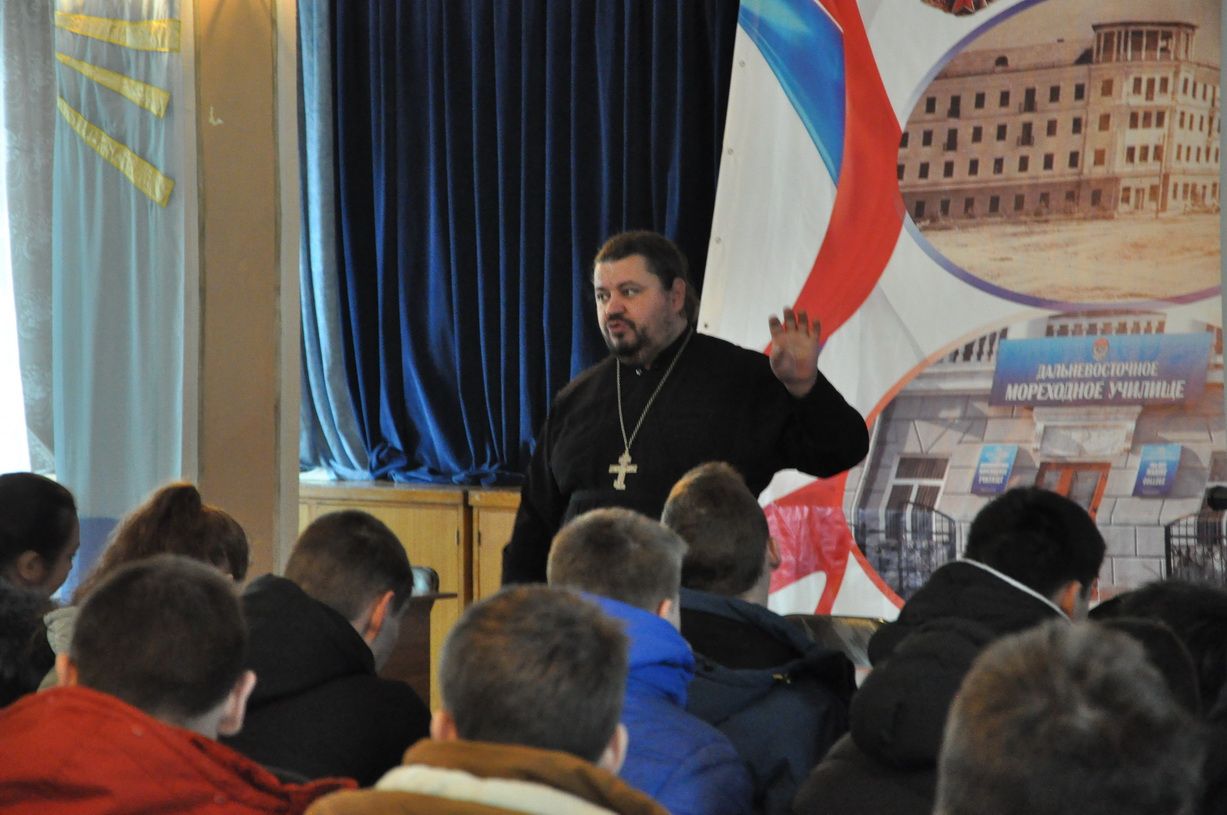 Находка. Со студентами Дальневосточного мореходного училища (филиал Дальрыбвтуза) города Находки встретился иерей Виталий Шаркеев, руководитель информационного отдела Находкинской епархии - собщает сайт Находкинской епархии.