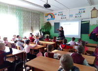 Спасское. По благословению благочинного VI округа Владивостокской епархии, настоятеля храма Вознесения Господня с. Спасское, митрофорного протоиерея Владимира Капитанюка прошли занятия с учениками младших классов в школе № 5. Подготовила и провела директор Воскресной школы храма Вознесения Господня с. Спасское Надежда Ольховикова, ей помогала Ирина Карайбеда. Более 100 младшеклассников приняли участие в беседе.