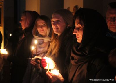 По доброй традиции каждую Пасху к нам в Пхеньян приезжает священник из Приморской митрополии Русской Православной Церкви. В этом году мы радовались главному празднику всех христиан вместе с протоиереем Евгением из Уссурийска и певчей Успенского храма во Владивостоке Ларисой Бурнаевой.