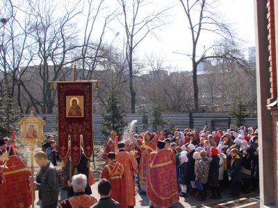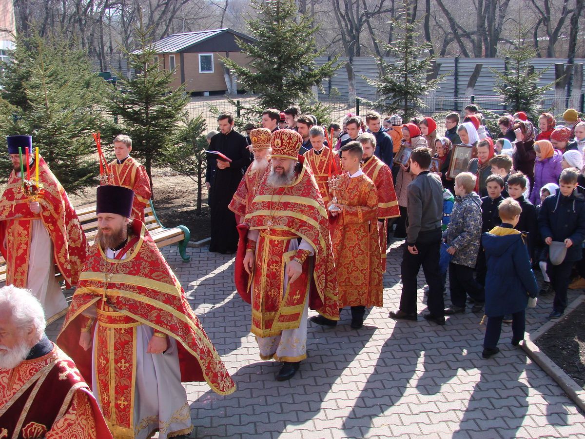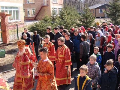 За Литургией молились прихожане храма, учителя Православной гимназии Владивостока, гимназисты и их родители. Завершилась Божественная литургия традиционным Пасхальным Крестным ходом, который сопровождал колокольный звон. Во время Причастия хор гимназистов исполнил Пасхальный тропарь на греческом языке.