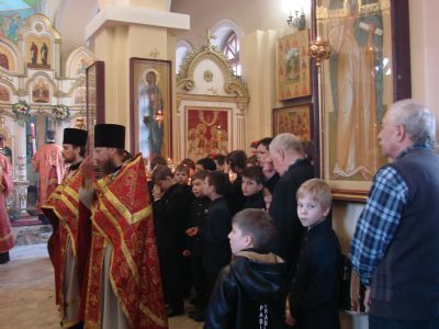 Его Высокопреосвященству сослужили: настоятель храма святых равноапостольных Кирилла и Мефодия протоиерей Игорь Талько; благочинный I округа епархии протоиерей Димитрий Федорин; протоиерей Андрей Метелёв, руководитель сектора по вопросам защиты материнства и детства при Епархиальном отделе по церковной благотворительности и социальному служению; и клирики храма.