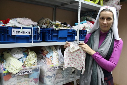 Социальный отдел помогает, в том числе и будущим мамам, сохранить ребёнка. У нас есть психолог кризисной беременности. За год работы склада удалось сохранить жизнь 18 малышам и ещё пятеро на сохранении. Мамам в кризисной беременности очень нужна помощь, пусть небольшая продуктами, детскими вещами и детским питанием, памперсами.