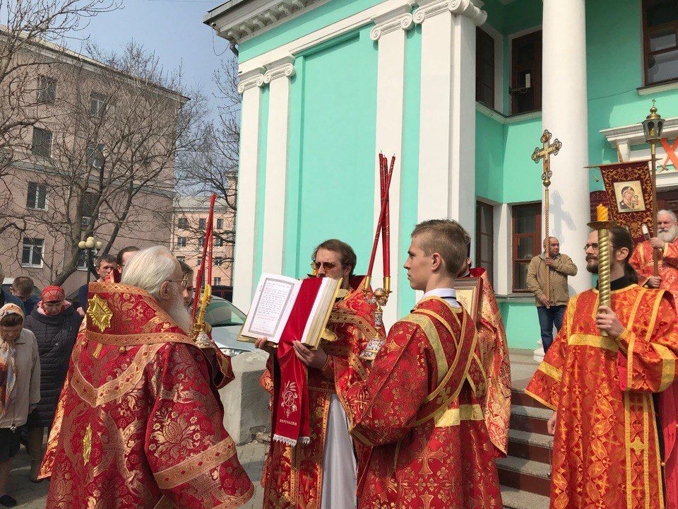 Владивосток. 29 апреля 2018 года, в Неделю 4-ю по Пасхе, о расслабленном, митрополит Владивостокский и Приморский Вениамин совершил Божественную литургию в храме Казанской иконы Божией Матери. Его Высокопреосвященству сослужили благочинный I округа протоиерей Димитрий Федорин, настоятель храма протоиерей Ростислав Мороз, иерей Михаил Дубанов, иерей Дионисий Гордеев, протодиакон Николай Наплавков.