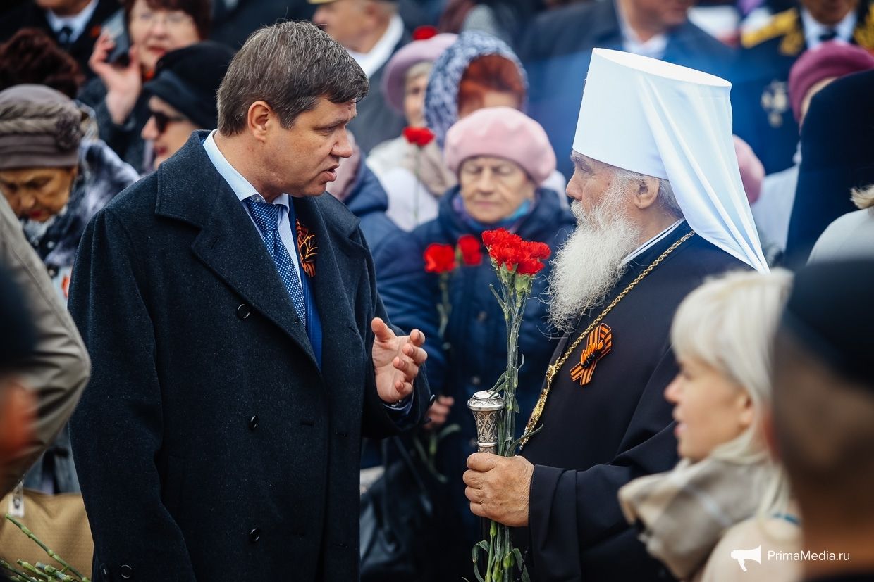 Владивосток. 8 мая 2018 года митрополит Владивостокский и Приморский Вениамин почтил память приморцев, павших во время Великой Отечественной войны. В церемонии возложения цветов участвовали также викарий Владивостокской епархии епископ Иннокентий и руководитель отдела по взаимодействию с вооруженными силами протоиерей Виктор Жильцов.
