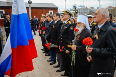 Церемония продолжилась на Корабельной набережной, цветы возложили к Стене памяти героев-владивостокцев.