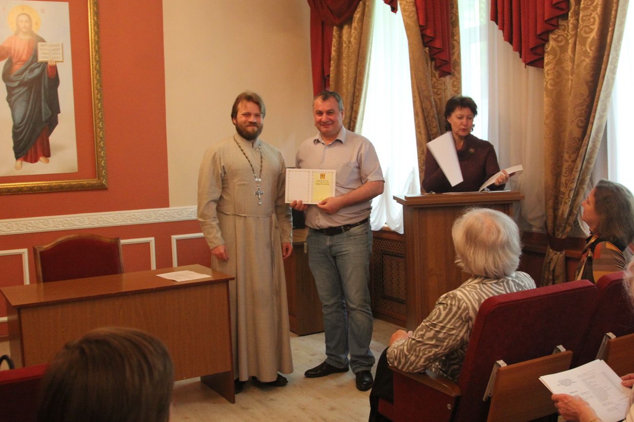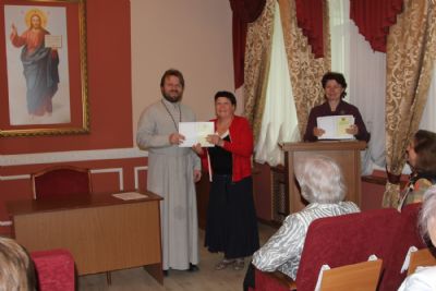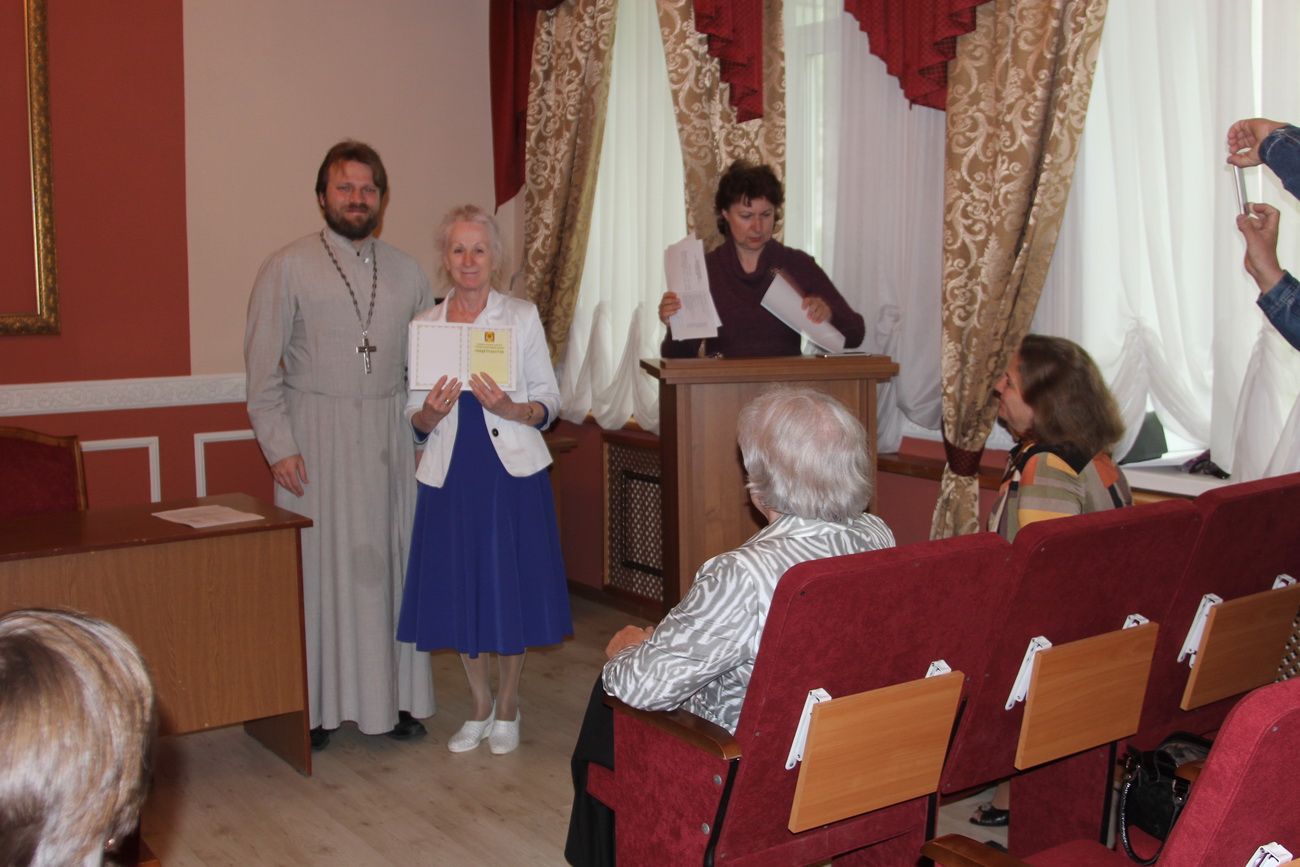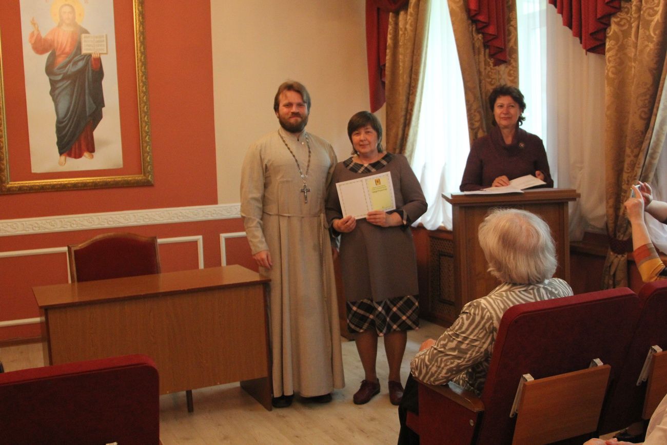 Затем участники вечера направились в актовый зал Духовного центра, где состоялось вручение свидетельств об окончании катехизических курсов. Выпускников поздравила руководитель Катехизических курсов, специалист епархиального отдела религиозного образования и катехизации Ирина Степановна Латышева. На выпускном акте также присутствовала преподаватель центра Татьяна Ивановна Гончарова.