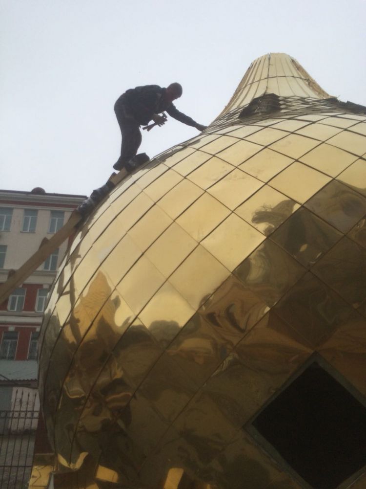 – Сейчас на строительной площадке уже собраны четыре средних купола. Сейчас собирают главный купол собора. Когда работа будет закончена, представитель завода-изготовителя из Волгодонска начнёт монтаж пластин из титанового сплава, которые покроют главный купол.