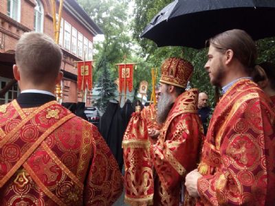 Его высокопреосвященству сослужили благочинные I, II, III, IV округов и духовенство епархии.