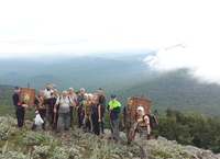 Юбилейное мероприятие, в котором приняли участие 18 человек, началось с молебна о путешествующих. Подъем на высоту с хоругвями занял три часа. На вершине у Поклонного креста протоиерей Владимир совершил молебен о всех и за вся.
