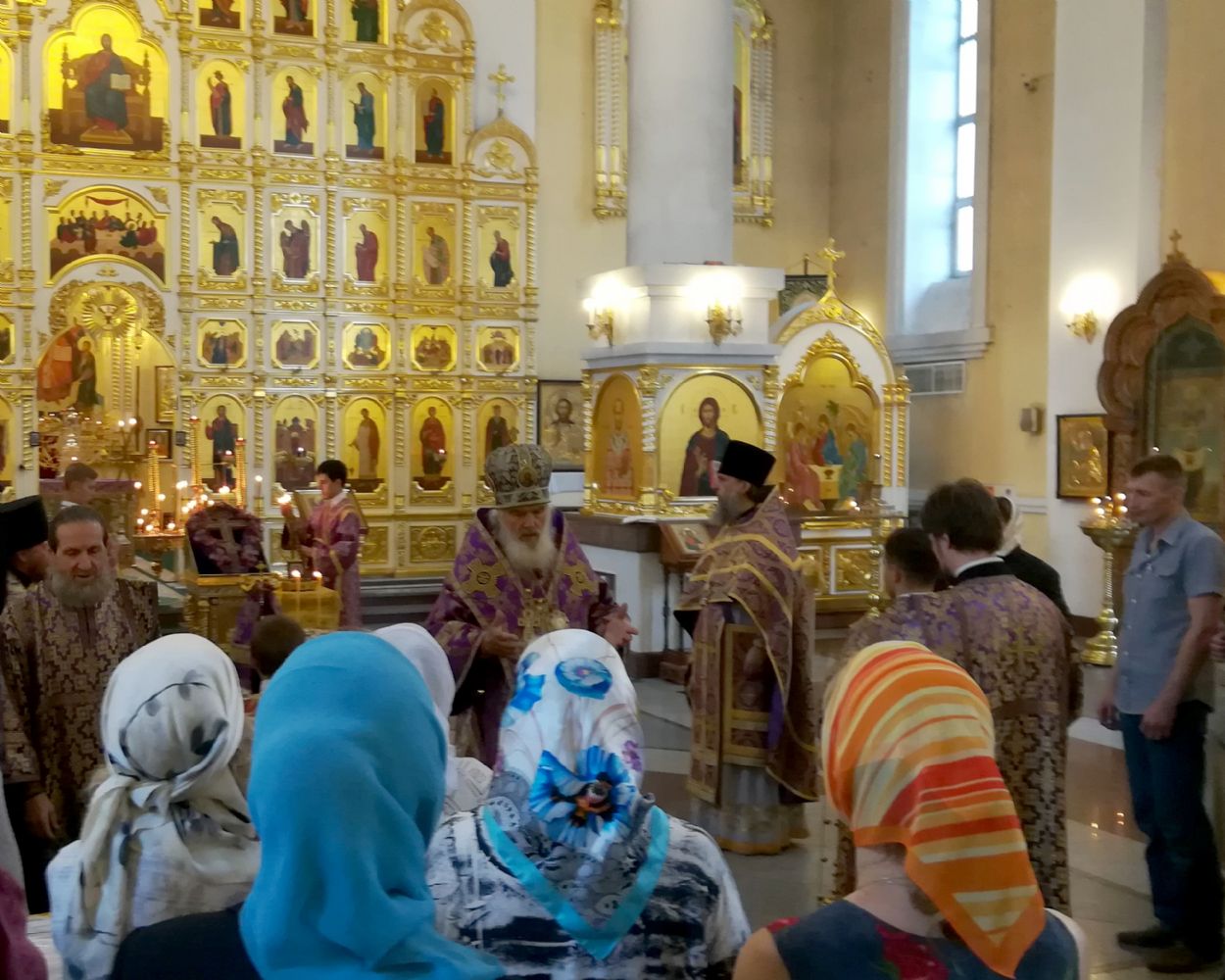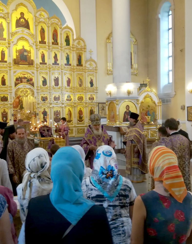 Митрополит Владивостокский и Приморский Вениамин возглавил во вторник, 14 августа 2018 года, служение Божественной литургии в Покровском кафедральном соборе. Его Высокопреосвященству сослужили: ключарь собора протоиерей Александр Талько; благочинный I округа Владивостокской епархии протоиерей Димитрий Федорин; духовенство епархии.