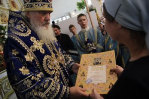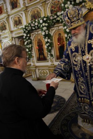 По окончании Божественной литургии митрополит Вениамин вручил Патриаршую и епархиальные награды. Протодиакон Алексий Терехов награждён медалью «В память 100-летия восстановления патриаршества в Русской православной церкви». Валентина Романовна Середа награждена Епархиальной медалью Порт-Артурской иконы Божией Матери «За церковные заслуги перед Владивостокской и Приморской епархией» (II степени). Многие прихожане и благотворители удостоены Архиерейских грамот.