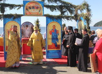 На Литургию был принесён ковчежец с частицей мощей апостола Андрея Первозванного.