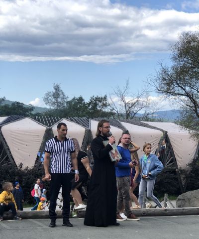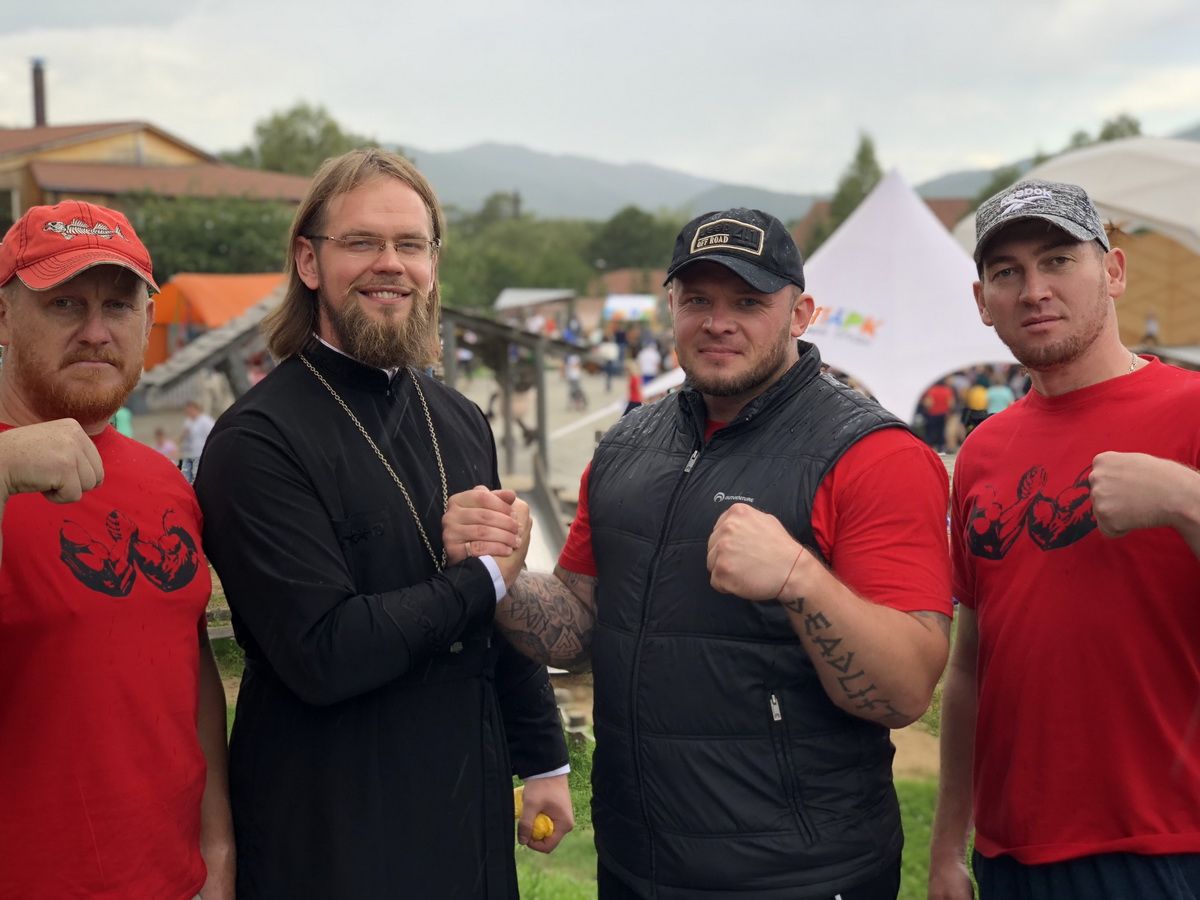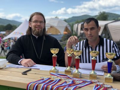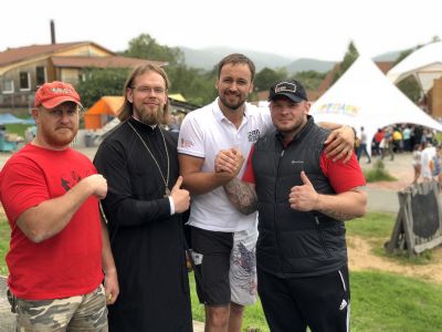 Иерей Даниил (чемпион по армреслингу в своей весовой категории) от имени всех спортсменов поздравил директора парка Владимира Дяуновича Ким и подарил ему икону святителя Николая Чудотворца.