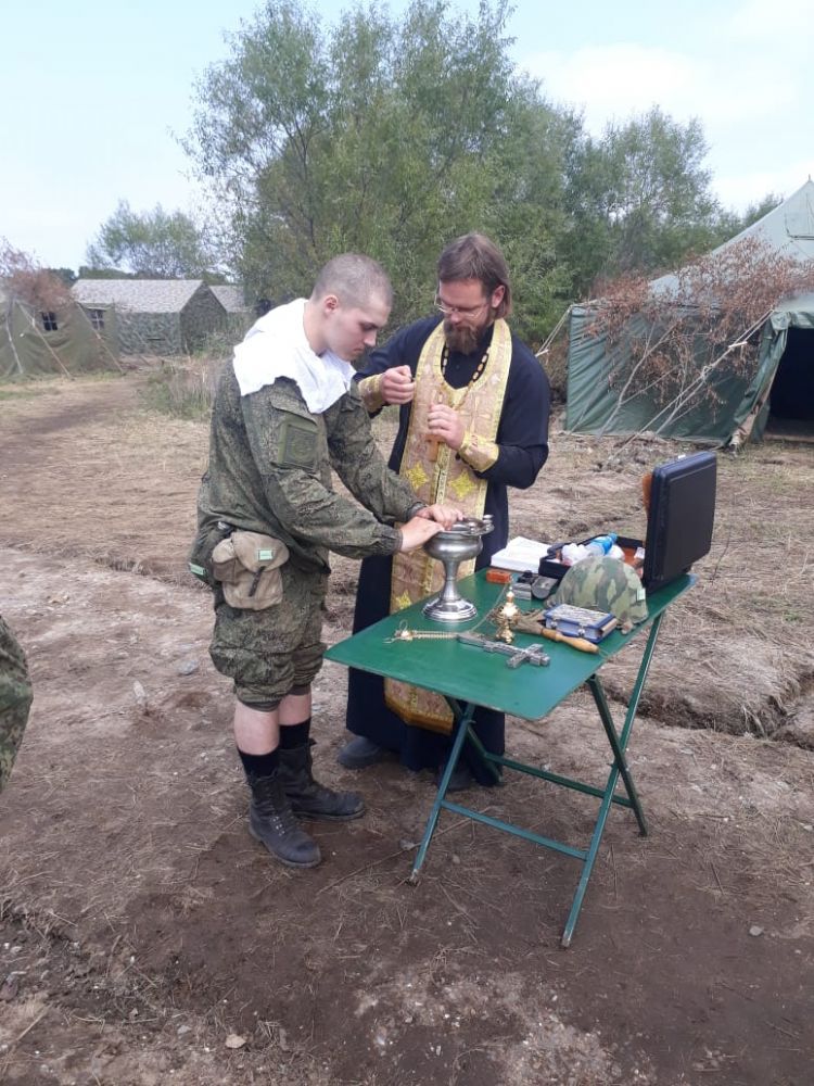 Также в полевых условиях иерей Даниил совершил Таинство Крещения по просьбе военнослужащего срочной службы.