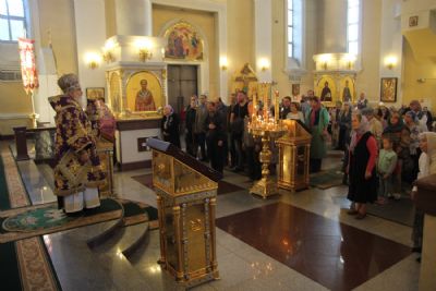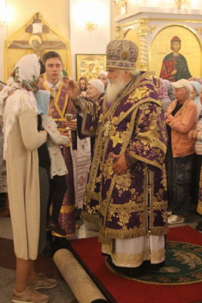 По окончании Литургии владыка Вениамин поздравил прихожан с праздником Воздвижения и обратился к ним с архипастырским словом.