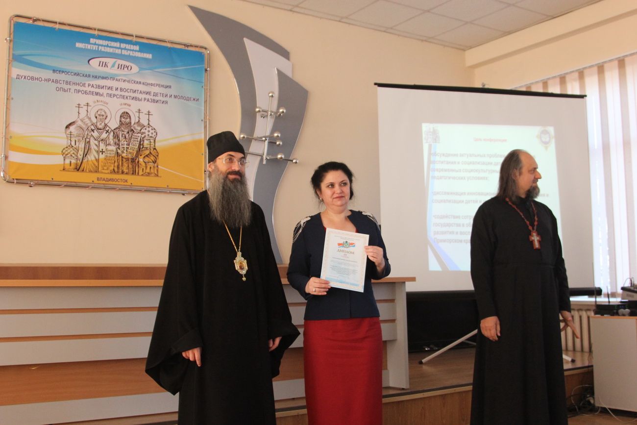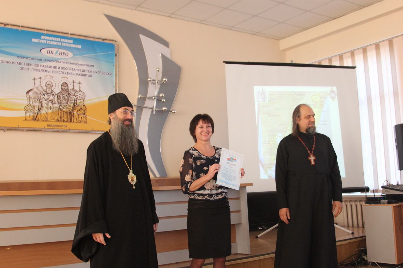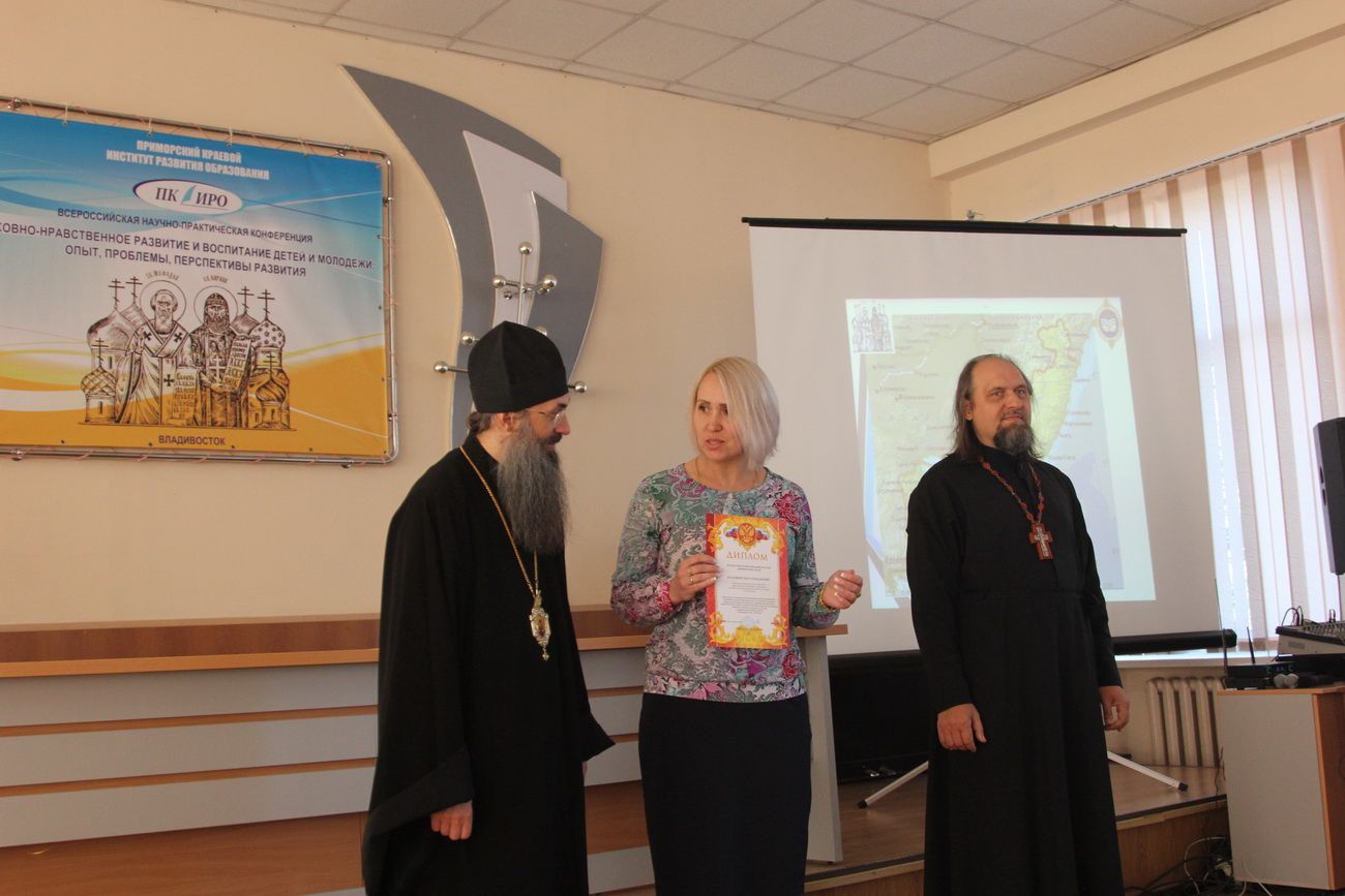 Владивосток. 2 октября 2018 года в Приморском краевом институте работников образования состоялось награждение участников регионального конкурса учителей. Епископ Уссурийский Иннокентий, викарий Владивостокской епархии вручил награды победителям регионального этапа Всероссийского конкурса в области педагогики, работы с детьми и молодежью до 20 лет «За нравственный подвиг учителя». Конкурс проводится Министерством образования и науки Российской Федерации совместно с Синодальным отделом религиозного образования и катехизации.
