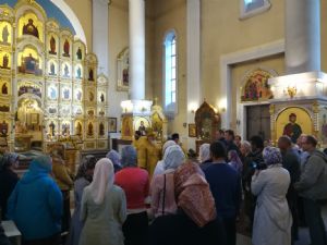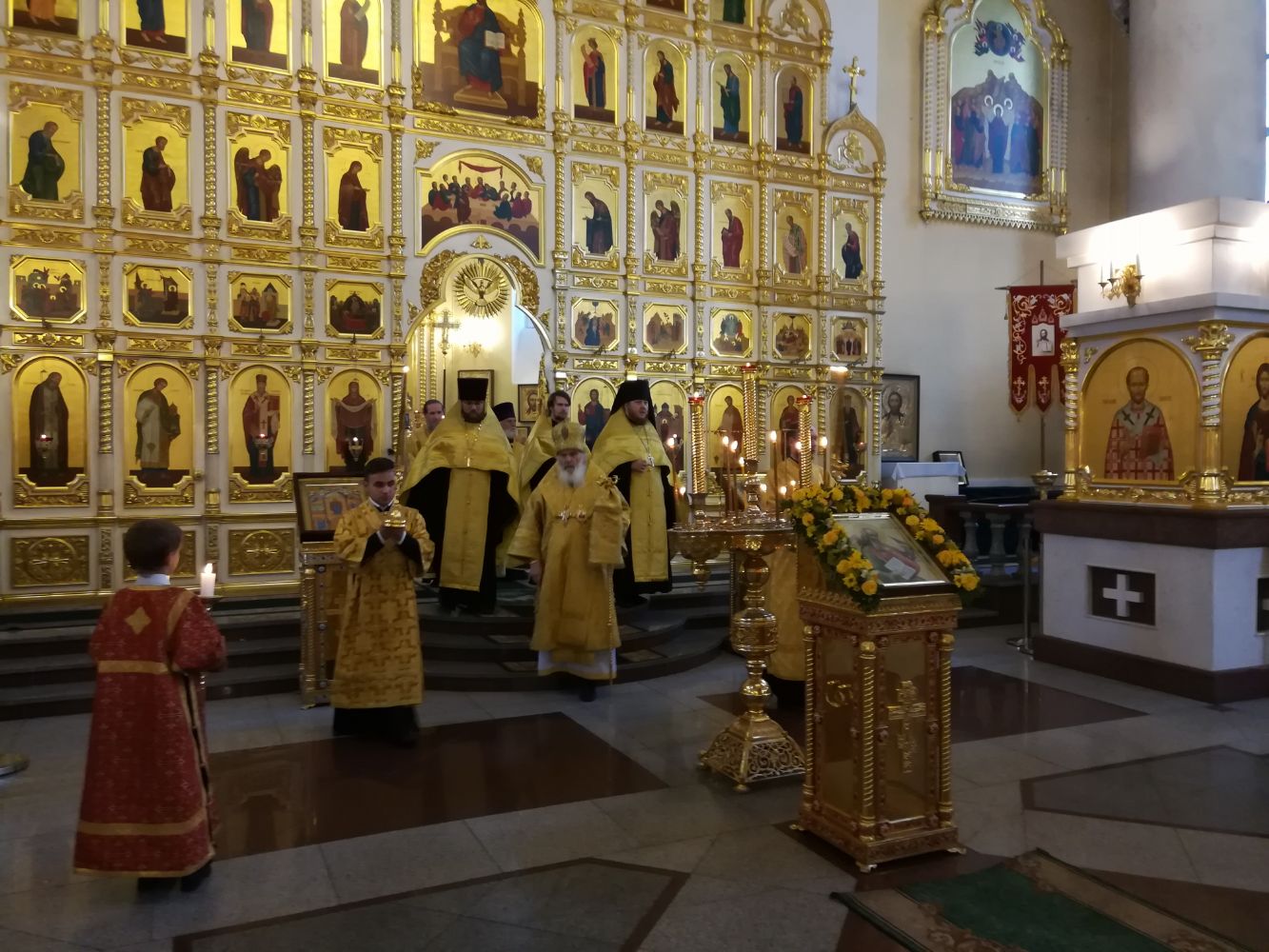 Накануне, 8 октября, Его Высокопреосвященство совершил всенощное бдение в Покровском кафедральном соборе в сослужении духовенства соборного храма.