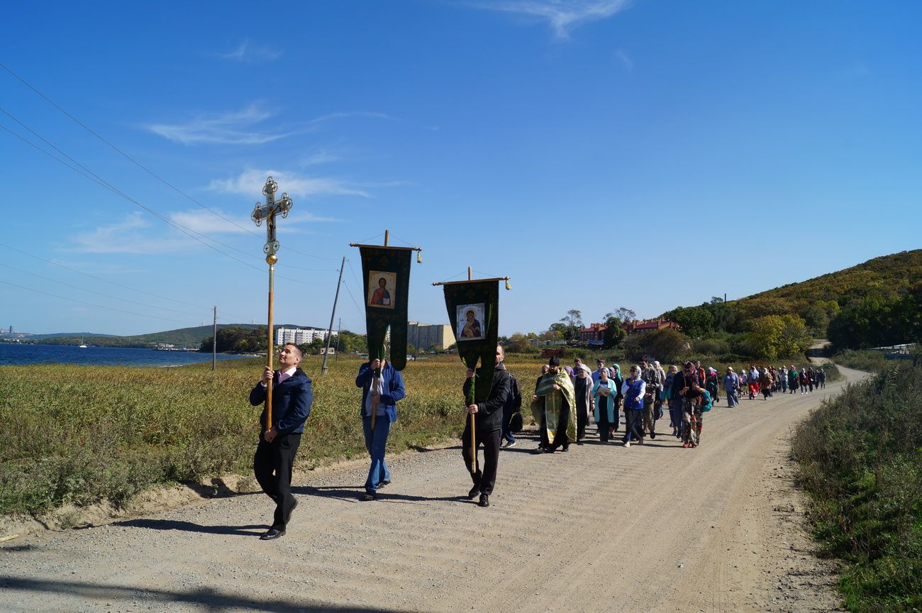 Владивосток. Остров Русский. 7 октября 2018 г. состоялся Крестный ход, посвящённый 100-летию иконы «Торжество Пресвятой Богородицы «Порт-Артурская» и 15-летию воздвижения в честь этого события Поклонного Креста. Крестный ход традиционно идёт от Серафима Саровского мужского монастыря к Поклоному Кресту. Крестный ход совершили прихожане Свято-Игоревского храма, преподаватели, учащиеся, родители Епархиальной воскресной школы «Серафимов ручеек» - всего около 60 человек.