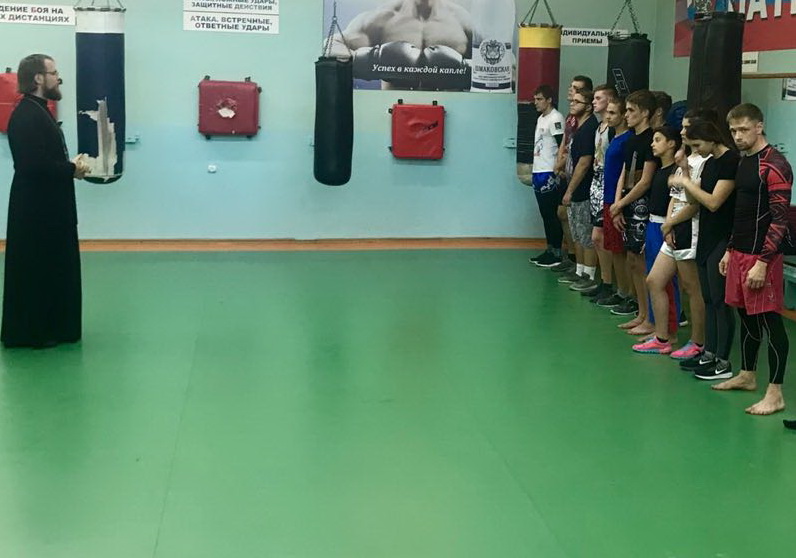 В ходе тренировки отцу Даниилу предоставили возможность сказать слово о присутствии Христовой веры в жизни, и спортивной карьере спортсмена и исповедании своей веры.