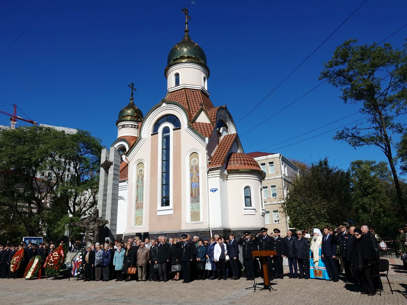 Митрополит Владивостокский и Приморский Вениамин отслужил заупокойную литию по погибшим воинам. Владыке сослужили настоятель храма в честь святого благоверного князя Игоря Черниговского протоиерей Даниил Нефедьев; руководитель епархиального отдела по взаимодействию с правоохранительными органами и МЧС иерей Димитрий Брызгалов и протодиакон Николай Наплавков.