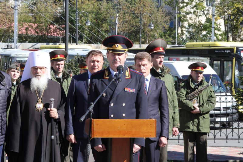 В акции приняли участие врио губернатора Приморского края Олег Кожемяко, председатель Законодательного собрания Александр Ролик, Глава УМВД Приморья генерал-майор полиции Николай Афанасьев, руководство и личный состав краевого Управления МВД России, Федеральной службы войск национальной гвардии, руководители администрации Приморского края и города Владивостока, представители депутатского корпуса, священнослужители, кадеты и воспитанники клуба «Юный патриот Родины».