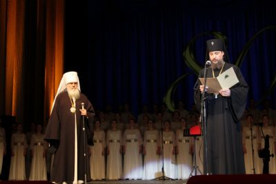 Вечером того же дня в Приморском академическом краевом театре имени М. Горького состоялся юбилейный вечер-концерт "Русь святая, храни веру православную!".