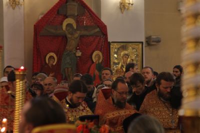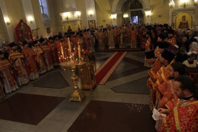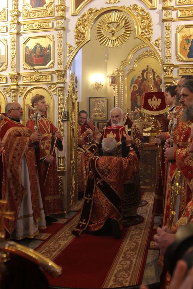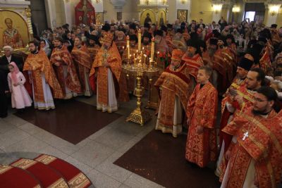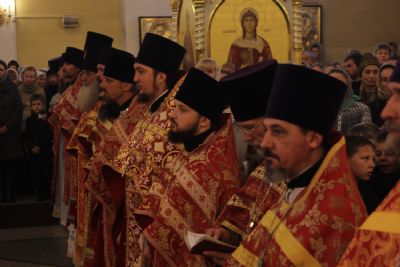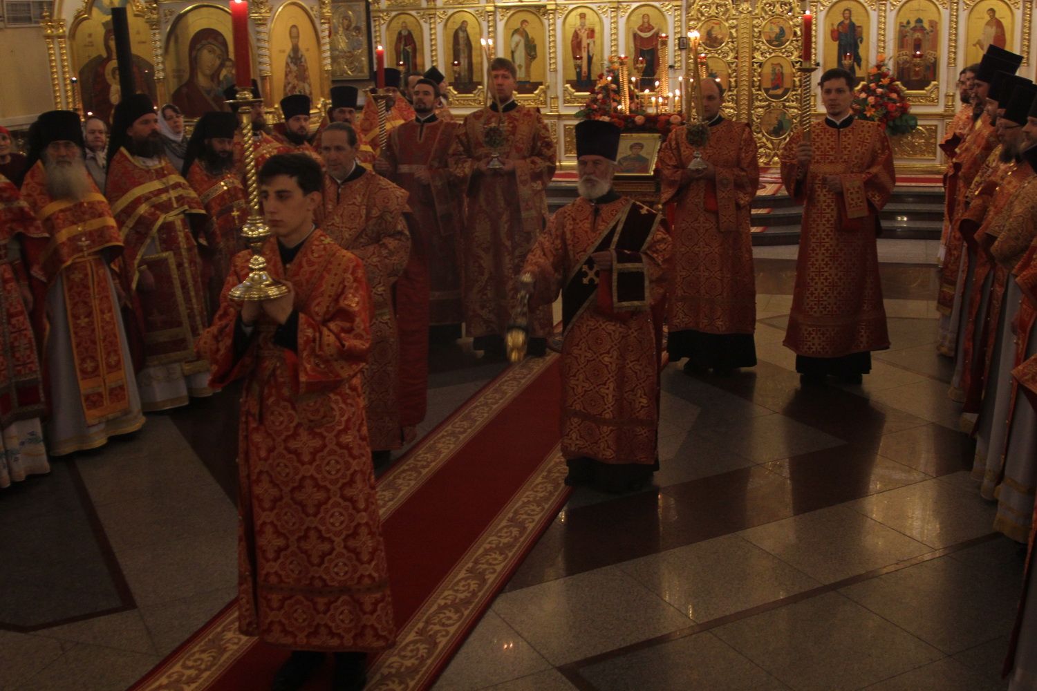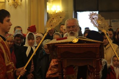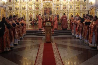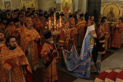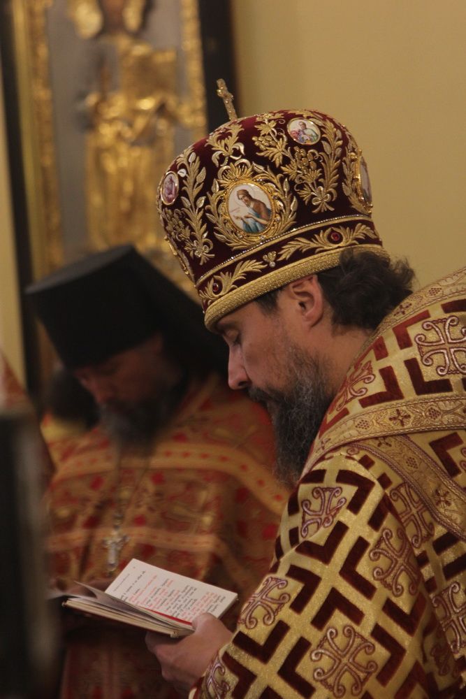 На сугубой ектении были вознесены прошения о единстве Православной Церкви и сохранении Церкви от разделений и расколов. После сугубой ектении митрополит Вениамин вознес молитву о мире на Украине.