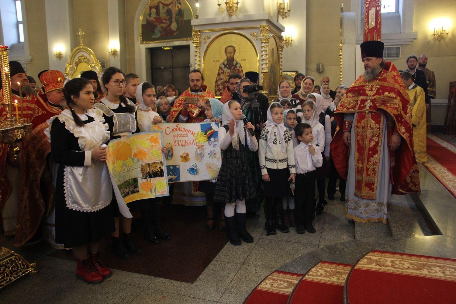 Митрополита Вениамина трогательно поздравили дети воскресной школы Покровского кафедрального собора.