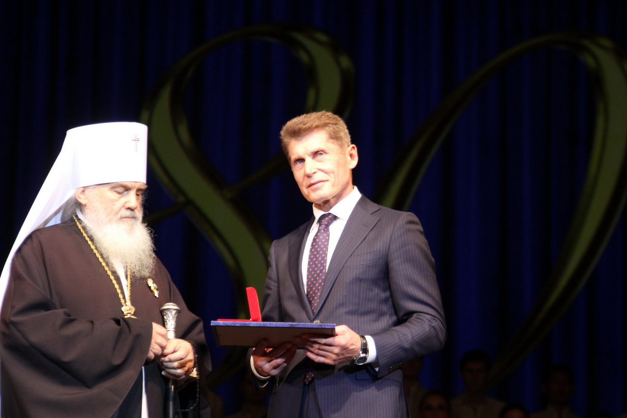 За просветительскую работу и вклад в развитие края врио губернатора вручил митрополиту Владивостокскому и Приморскому почетный знак «Почетный гражданин Приморского края».