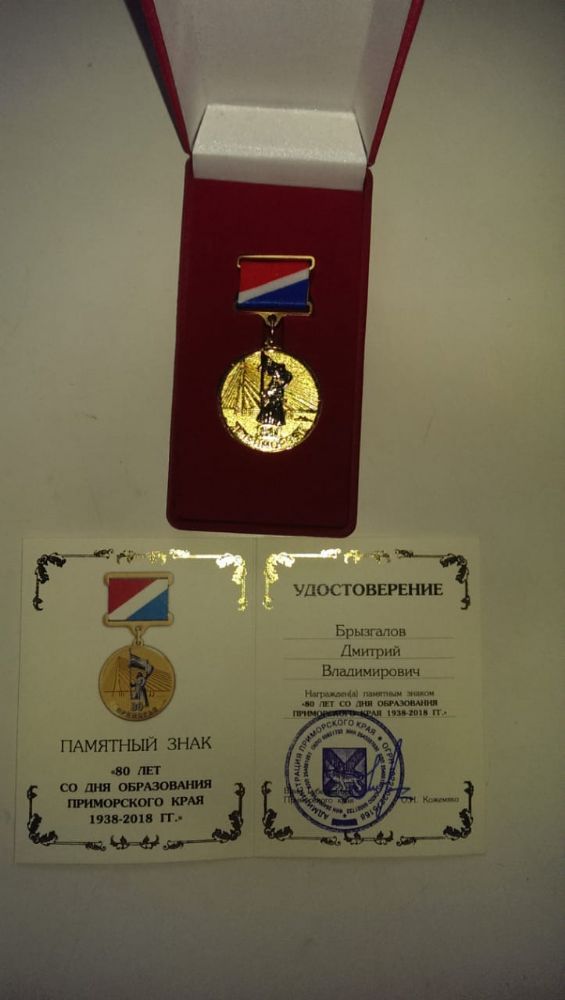 Все члены Общественного совета при управлении Федеральной службы судебных приставов получили памятные знаки к 80-летию со дня образования Приморского края.