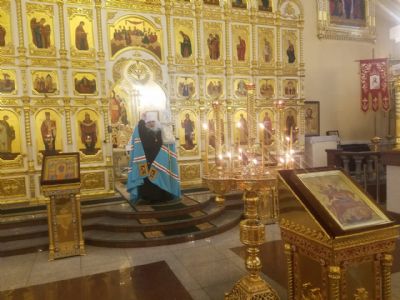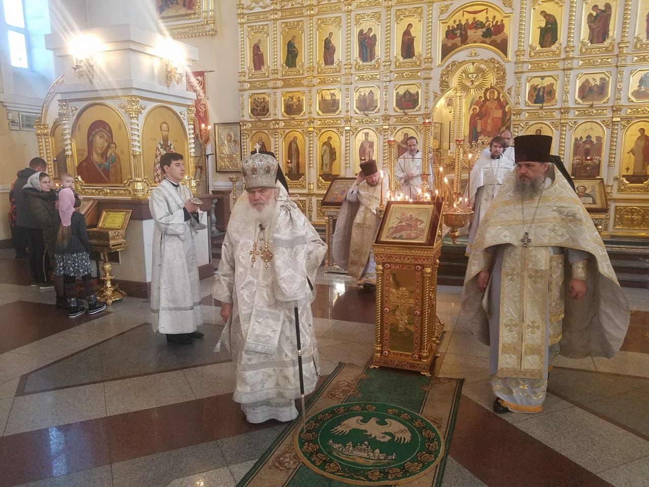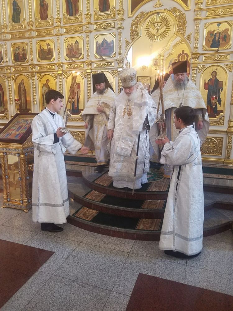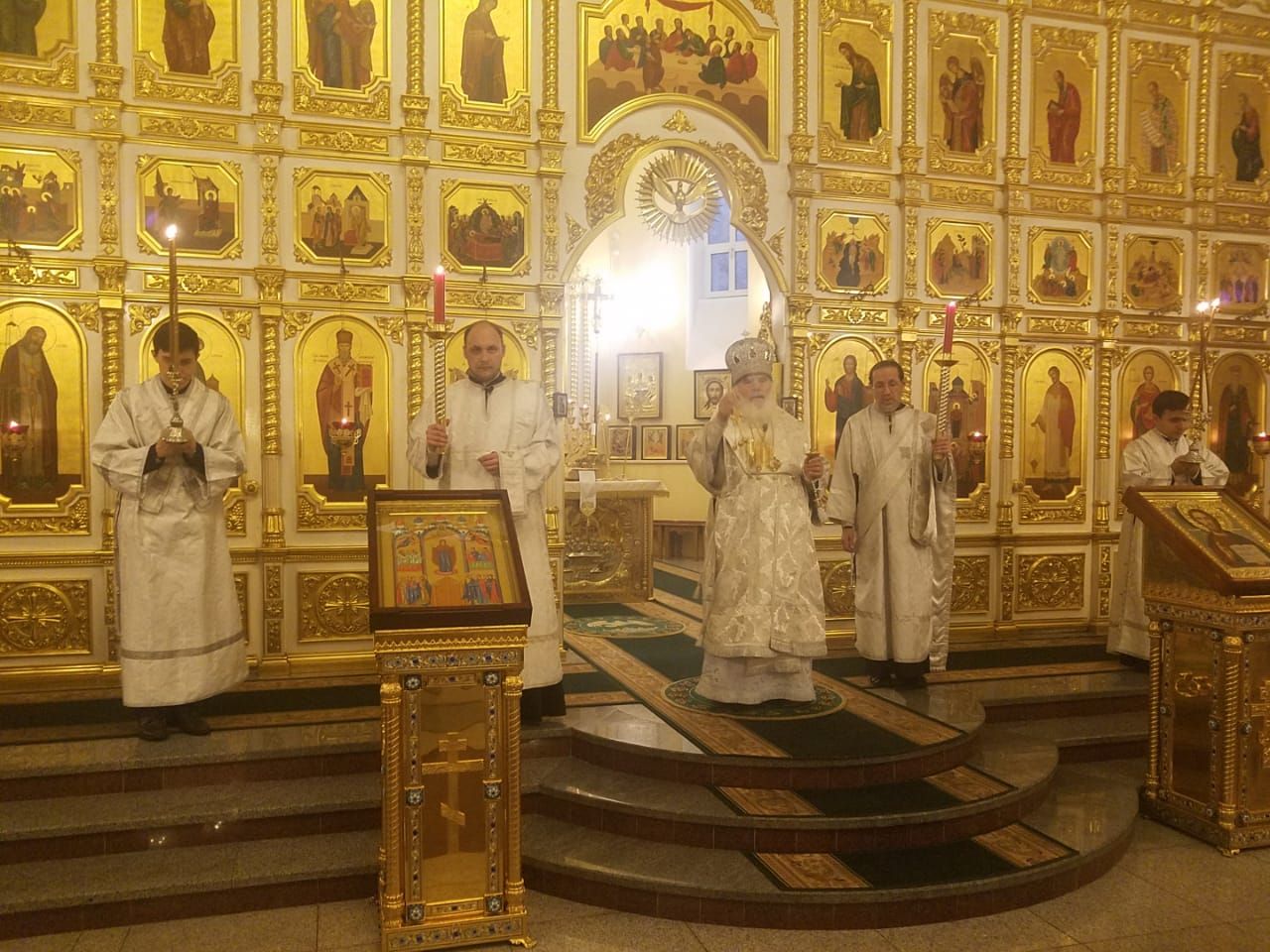 Накануне, Его Высокопреосвященство совершил всенощное бдение в Покровском кафедральном соборе.