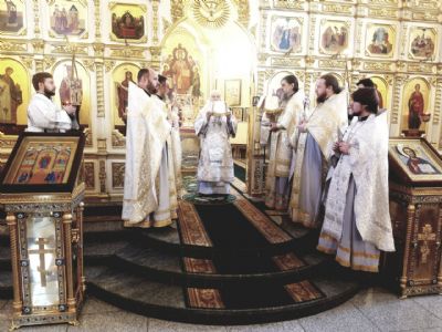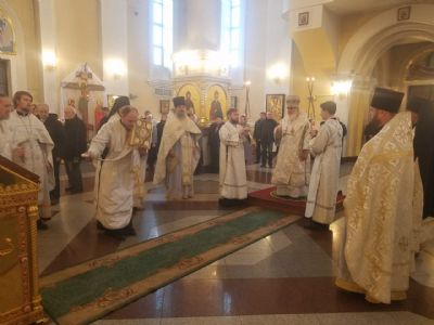 Его высокопреосвященству сослужили благочинные I, II, III, IV округов и духовенство епархии.