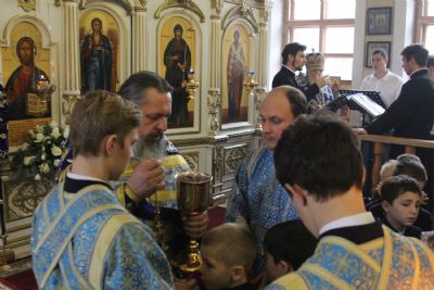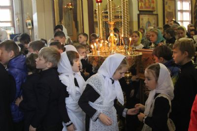 Митрополит Вениамин обратился к отцу Константину со словами напутствия и поздравлениями. После проповеди о празднике Введения во храм Пресвятой Богородицы настоятель храма протоиерей Игорь Талько поздравил владыку Вениамина с праздником, отметил, что ежегодно последние 15 лет владыка проводит этот праздник в храме при православной гимназии.