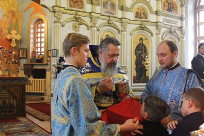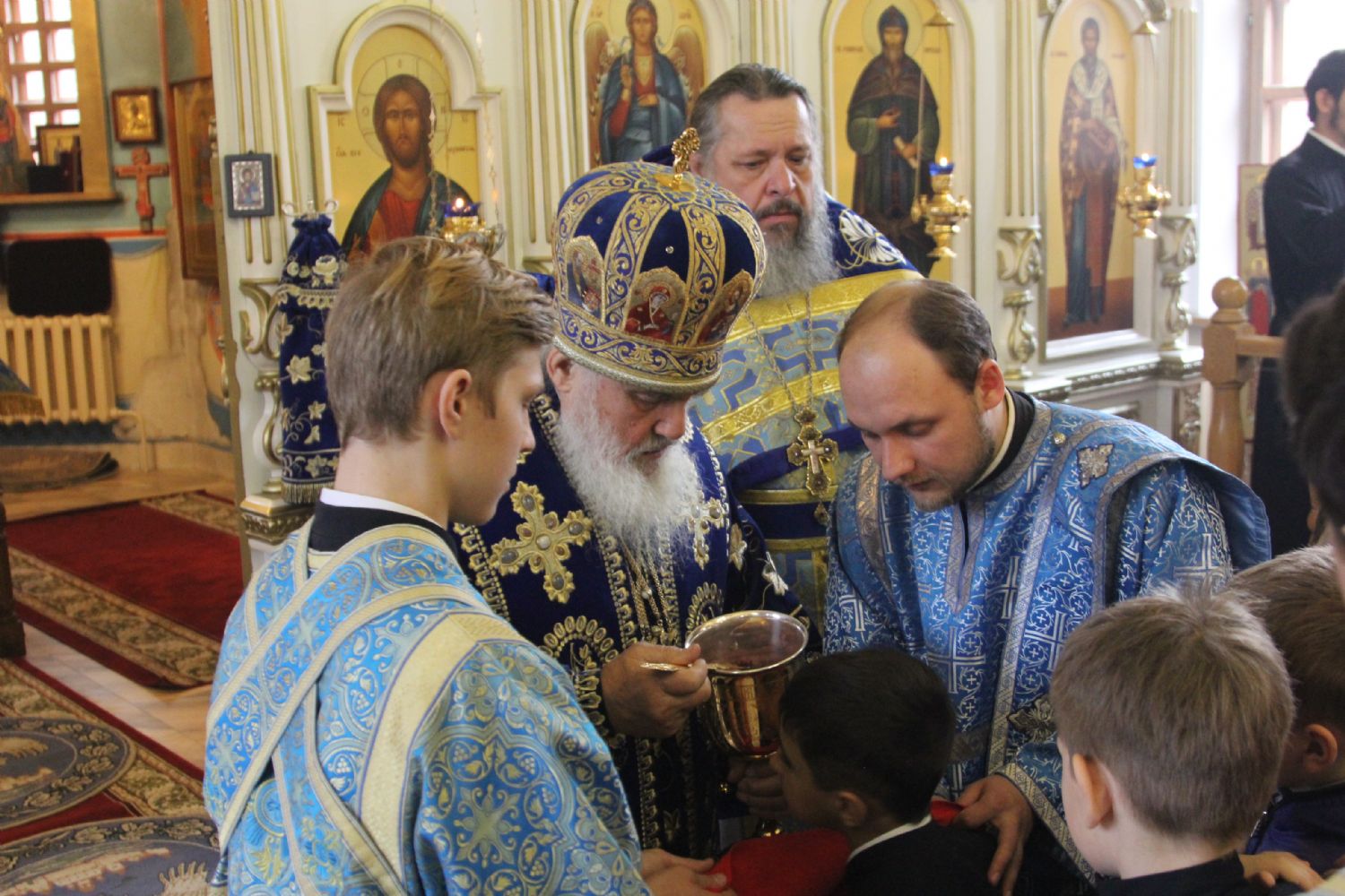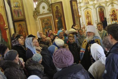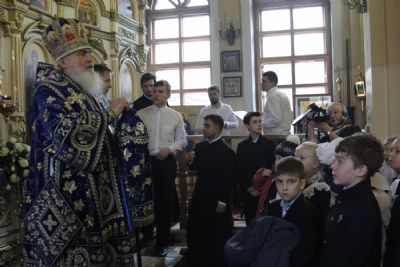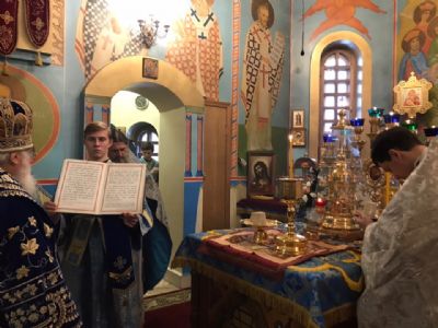Владыке сослужили настоятель храма митрофорный протоиерей Игорь Талько, клирики храма.
