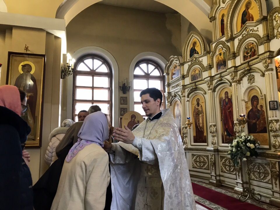 По окончании богослужения новорукоположенный священник преподал верующим своё первое благословение.