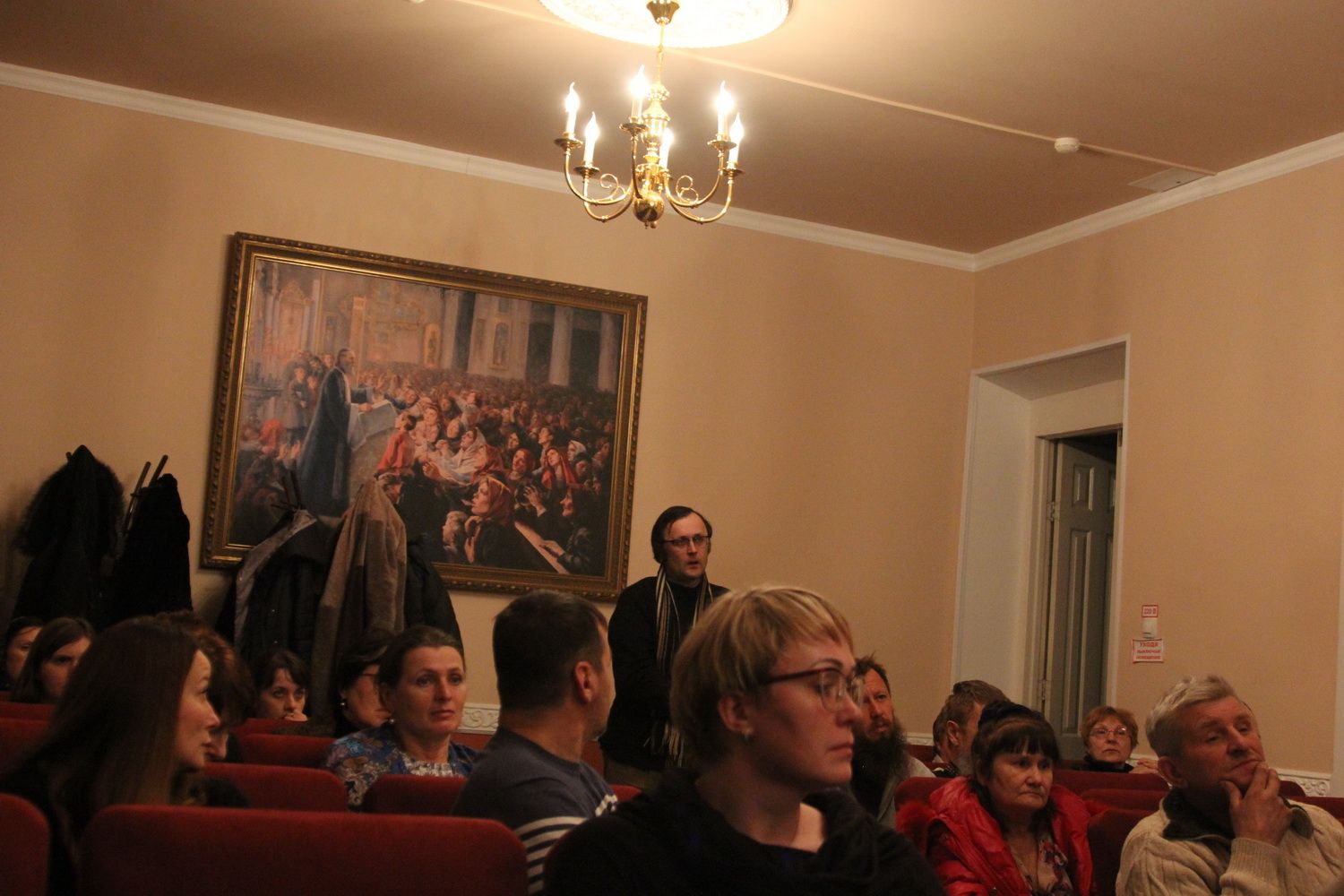 На лекцию собрались студенты Центра подготовки церковных специалистов, сотрудники епархиального управления, прихожане.