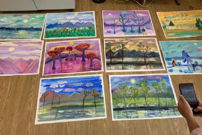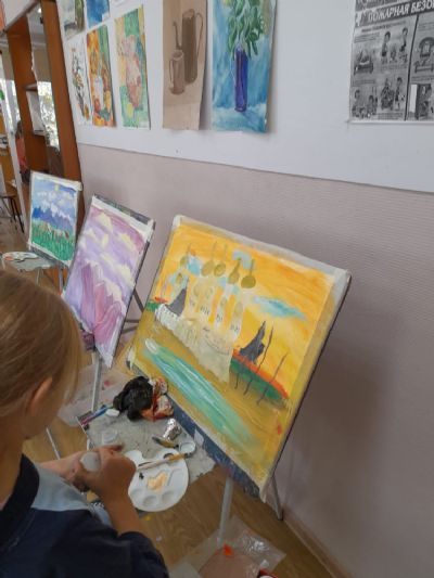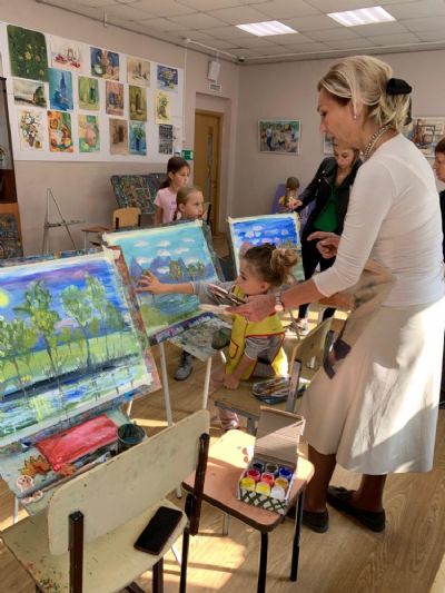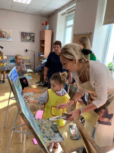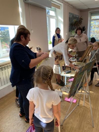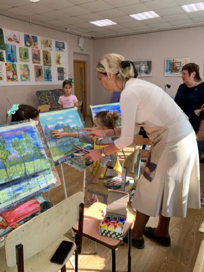 Затем Ольга Николаевна предложила юным художникам и художницам через написание картин «создать свой красочный мир на бумаге», объяснила им принципы работы с цветами, после чего в процессе написания детьми картин подсказывала, помогала вносить правки, и картины «оживали».