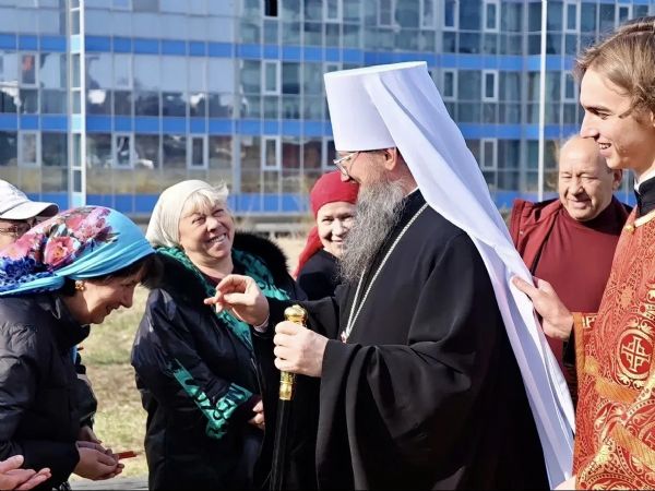 На входе в храм архипастыря радушно встретили прихожане. Владыка преподал всем собравшимся своё благословение.