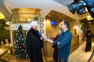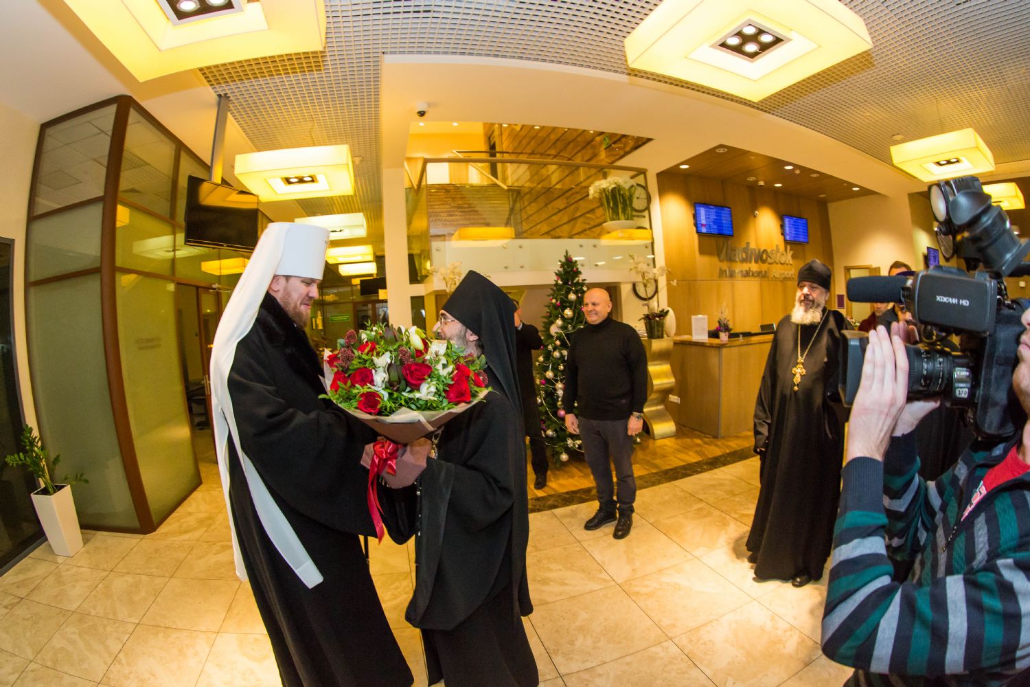 Митрополит Владимир благословил встречавших его клириков и мирян и обратился к собравшимся и представителям СМИ с приветственным словом и ответил на вопросы журналистов.