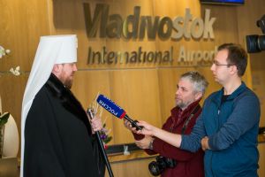 Владивосток. Сегодня, назначенный Святейшим Патриархом и Священным Синодом в заседании 28 декабря, митрополит Владивостокский и Приморский Владимир прибыл в Приморье. В аэропорту Высокопреосвященнейшего владыку встречали епископ Уссурийский Иннокентий, викарий Владивостокской епархии; секретарь епархии протоиерей Игорь Талько; благочинный I округа епархии протоиерей Димитрий Федорин; благочинный II округа протоиерей Сергий Якутов; благочинный III округа протоиерей Евгений Маляр. Владыку также приветствовал врио вице-губернатора Приморского края О.А. Мельников.