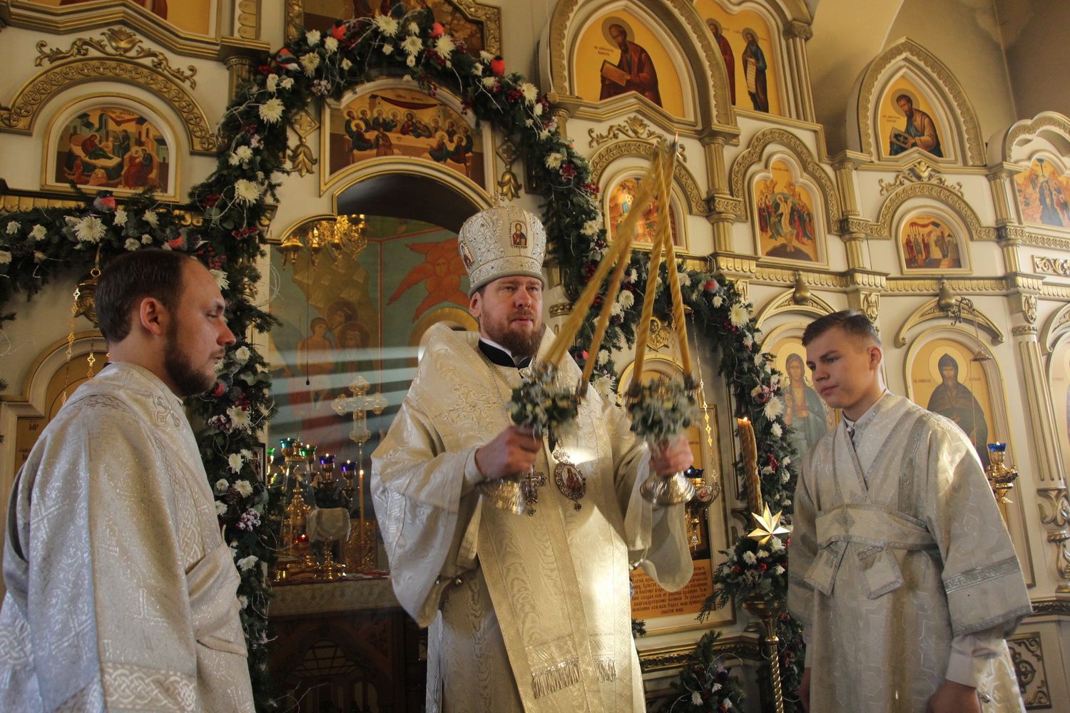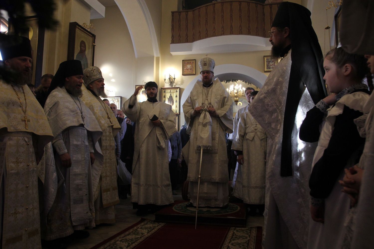 Его Высокопреосвященству сослужили: секретарь епархии настоятель храма святых равноапостольных Кирилла и Мефодия митрофорный протоиерей Игорь Талько, благочинный I округа протоиерей Димитрий Федорин; протоиерей Андрей Метелёв, руководитель епархиальной комиссии по вопросам семьи, защиты материнства и детства; наместник Свято-Троицкого Николаевского мужского монастыря игумен Василий (Кулаков); ключарь Покровского кафедрального собора протоиерей Александр Талько.
