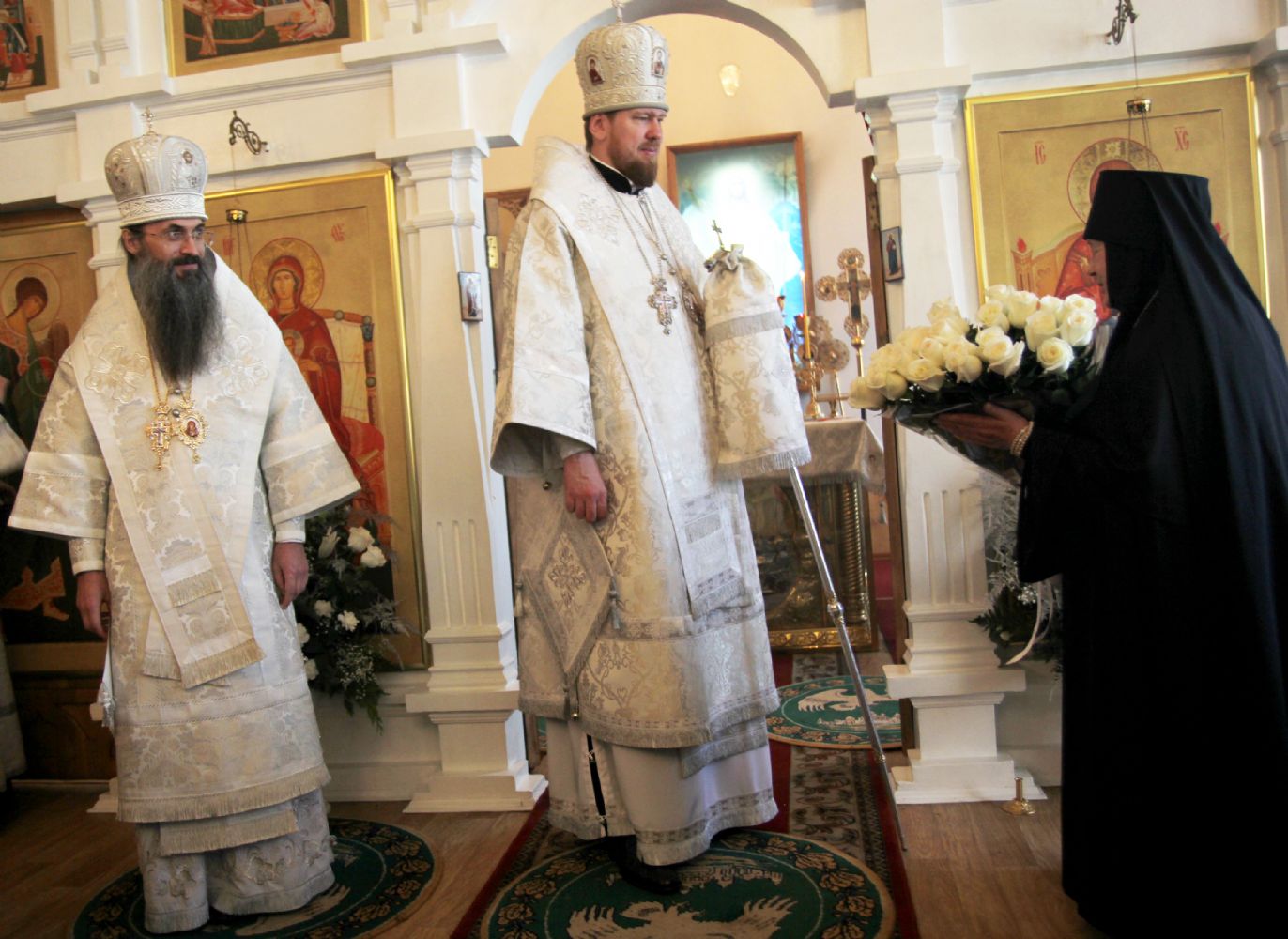 Игумения Мария обратилась к Высокопреосвященнейшему владыке Владимиру с пламенным словом, в котором отметила исторические вехи в истории монастыря и всего Православного Приморья. От имени сестер обители матушка игумения преподнесла в дар митрополиту праздничный букет.