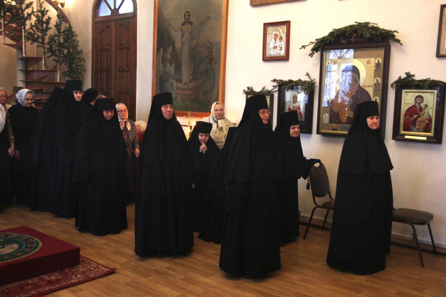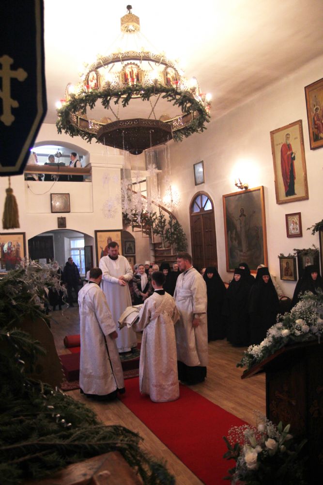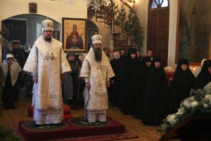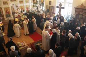 За богослужением молилась настоятельница монастыря игумения Мария (Пономарева) с сестрами. С архиереям Владивостокской епархии служили: благочинный I округа прот. Димитрий Федорин; старший священник обители иерей Вадим Маишев; клир храма. Песнопения исполнил монастырский хор. За богослужением были вознесены молитвы о мире на Украине. Проповедь на запричастном стихе произнес иерей Вадим Маишев.
